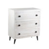 Vaaleaksi käsitelty mangopuinen lipasto, jossa 1 laatikko ja 1 ovi.