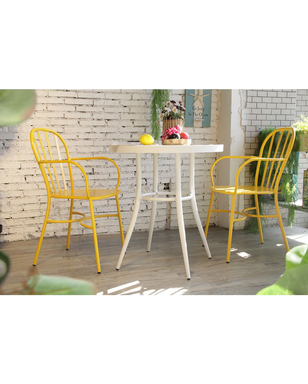 Valkoinen alumiinipöytä, jonka ympärysmitta 70 cm. Super trendikäs pöytä sopii sisälle tai parvekkeelle ja on kevyt siirtää paikasta toiseen. Yhdistä saman sarjan patinoitujen tuolien kanssa kanssa. Tuoleja saatavilla useassa värissä.