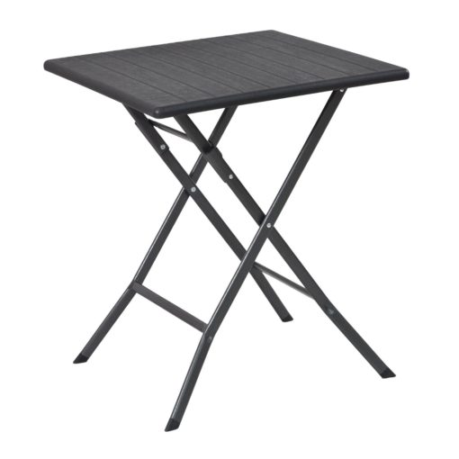 Musta taittopöytä, jonka pinnassa puukuviointi.
