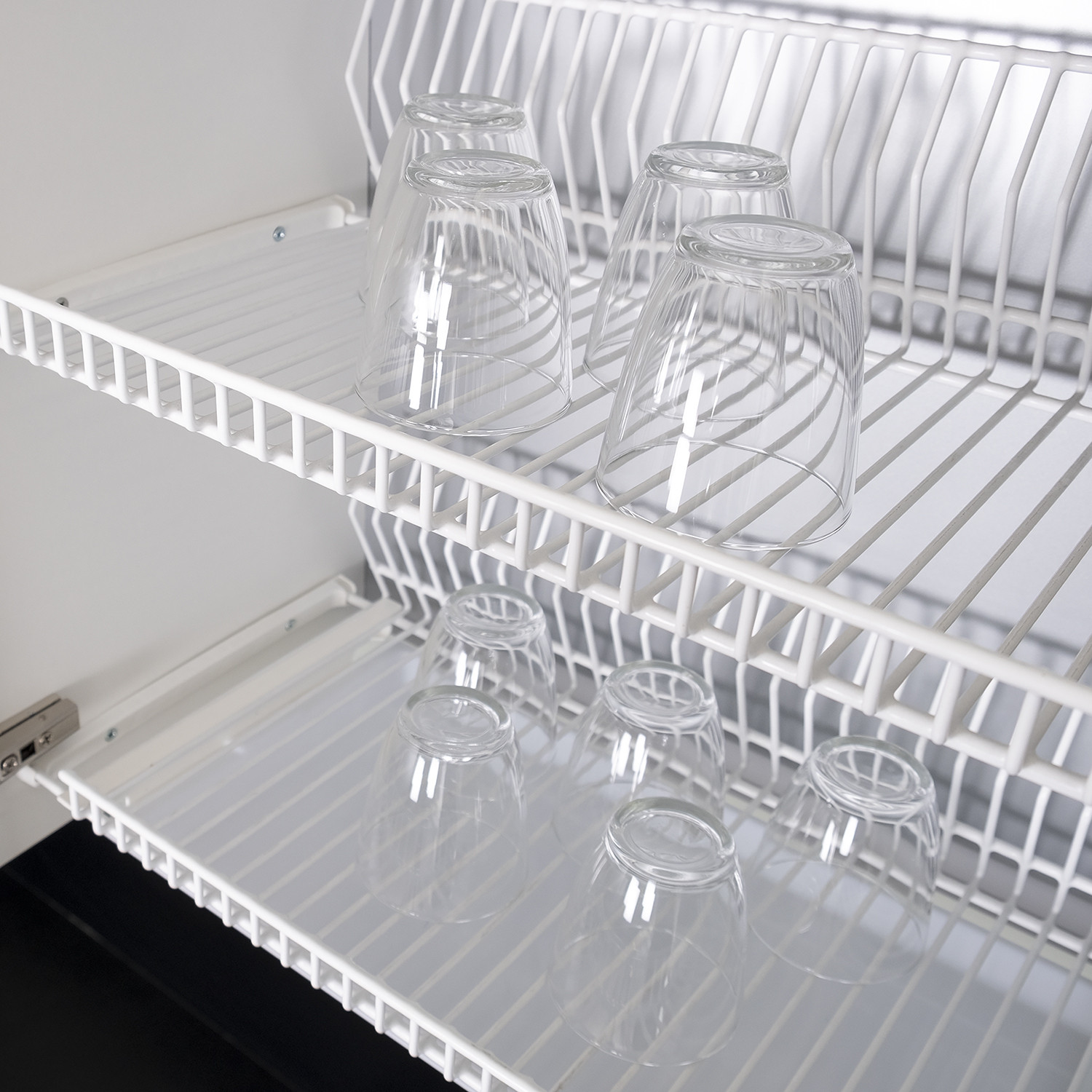 Hyllyn mukana tulevat säädettävät kannatinlistat. Valkoinen.