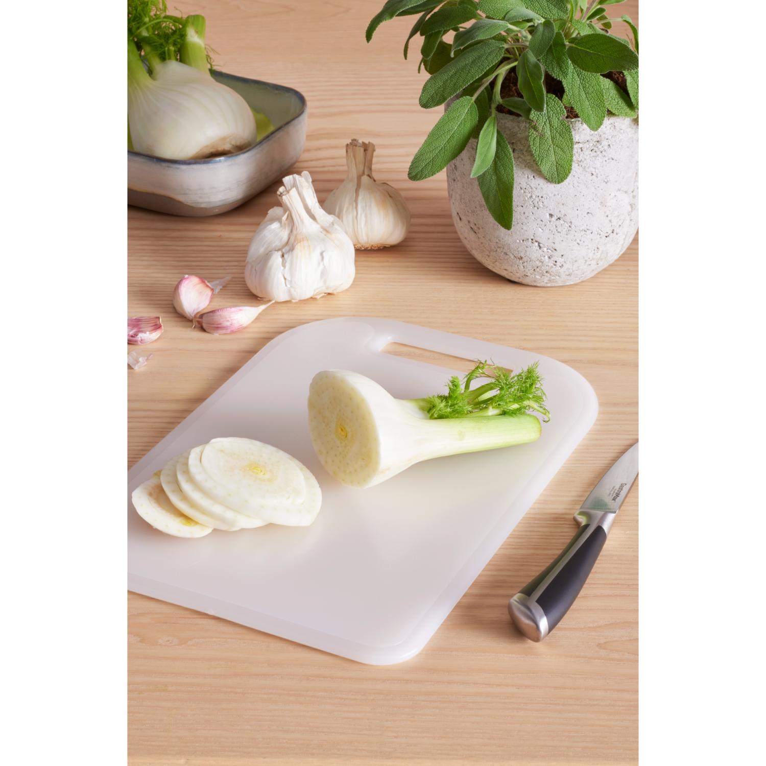 GastroMax™-leikkuulaudat ovat kestäviä, vaivattomia puhdistaa ja helliä veitsille. Valikoima sisältää neljä eri kokoista leikkuulautaa erilaisiin tarpeisiin. Tämä keskikokoinen leikkuulauta sopii täydellisesti kasvisten, isompien hedelmien ja leivän leikkaamiseen. Tehty Suomessa. Helppo puhdistaa, kestää konepesun.