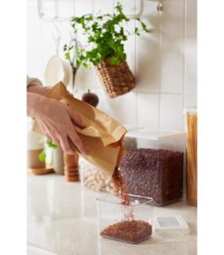 SmartStore™ Vision -sarja sisältää pinoutuvia ja modulaarisia säilytyspurkkeja kuiva-aineille. Purkit tuovat järjestystä keittiön kaappeihin ja laatikoihin, samalla optimoiden käytettävissä olevan tilan. Läpinäkyvän purkin ja kannen ansiosta sisällön näkee helposti. 0,8 litran purkki sopii erinomaisesti pähkinöiden, siementen ja muiden kuivatuotteiden säilyttämiseen. Voit merkitä purkin sisällön akryylikynällä. Merkintä pysyy hyvin, mutta lähtee pois pesussa.