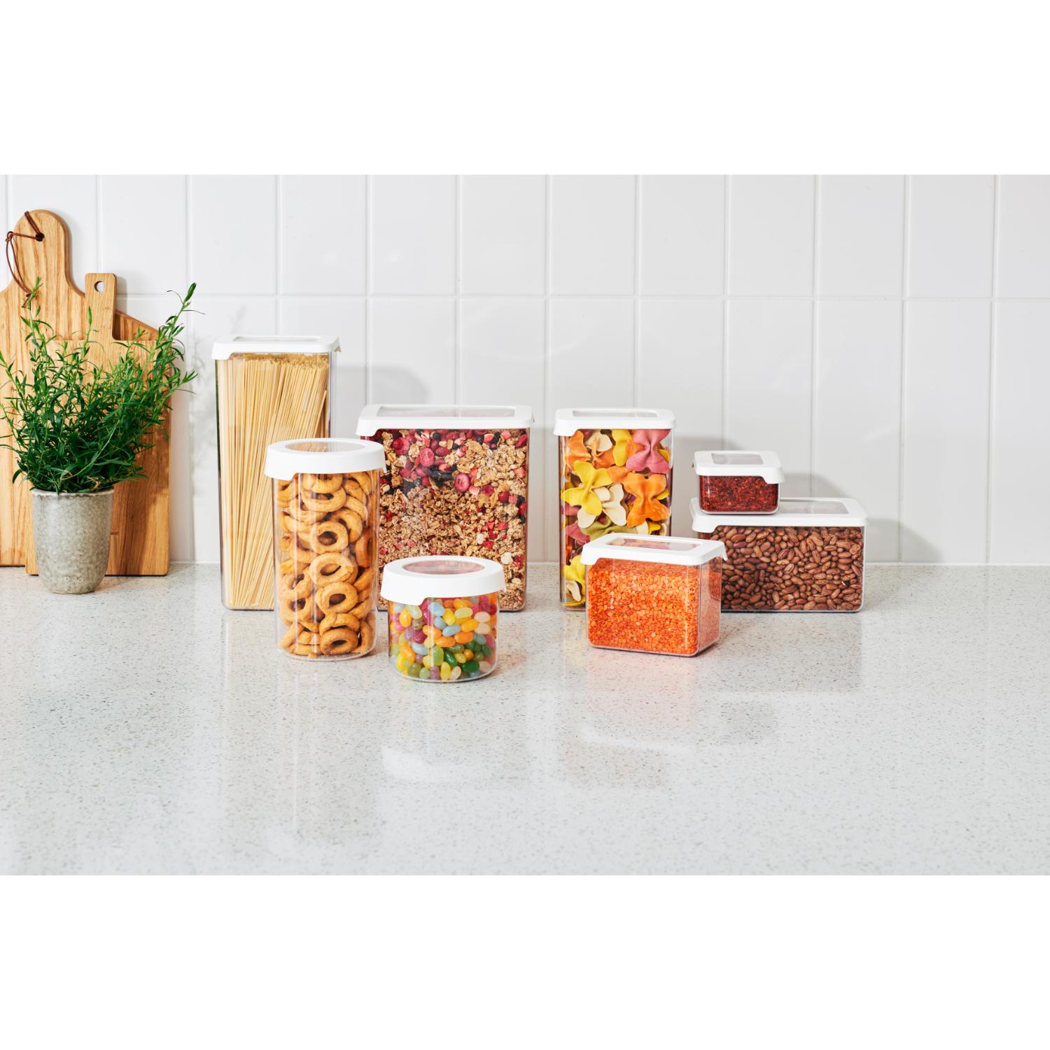 SmartStore™ Vision -sarja sisältää pinoutuvia ja modulaarisia säilytyspurkkeja kuiva-aineille. Purkit tuovat järjestystä keittiön kaappeihin ja laatikoihin, samalla optimoiden käytettävissä olevan tilan. Läpinäkyvän purkin ja kannen ansiosta sisällön näkee helposti. 1,65 litran purkki sopii erinomaisesti pastan, kaurahiutaleiden ja muiden kuivatuotteiden säilyttämiseen. Voit merkitä purkin sisällön akryylikynällä. Merkintä pysyy hyvin, mutta lähtee pois pesussa.
