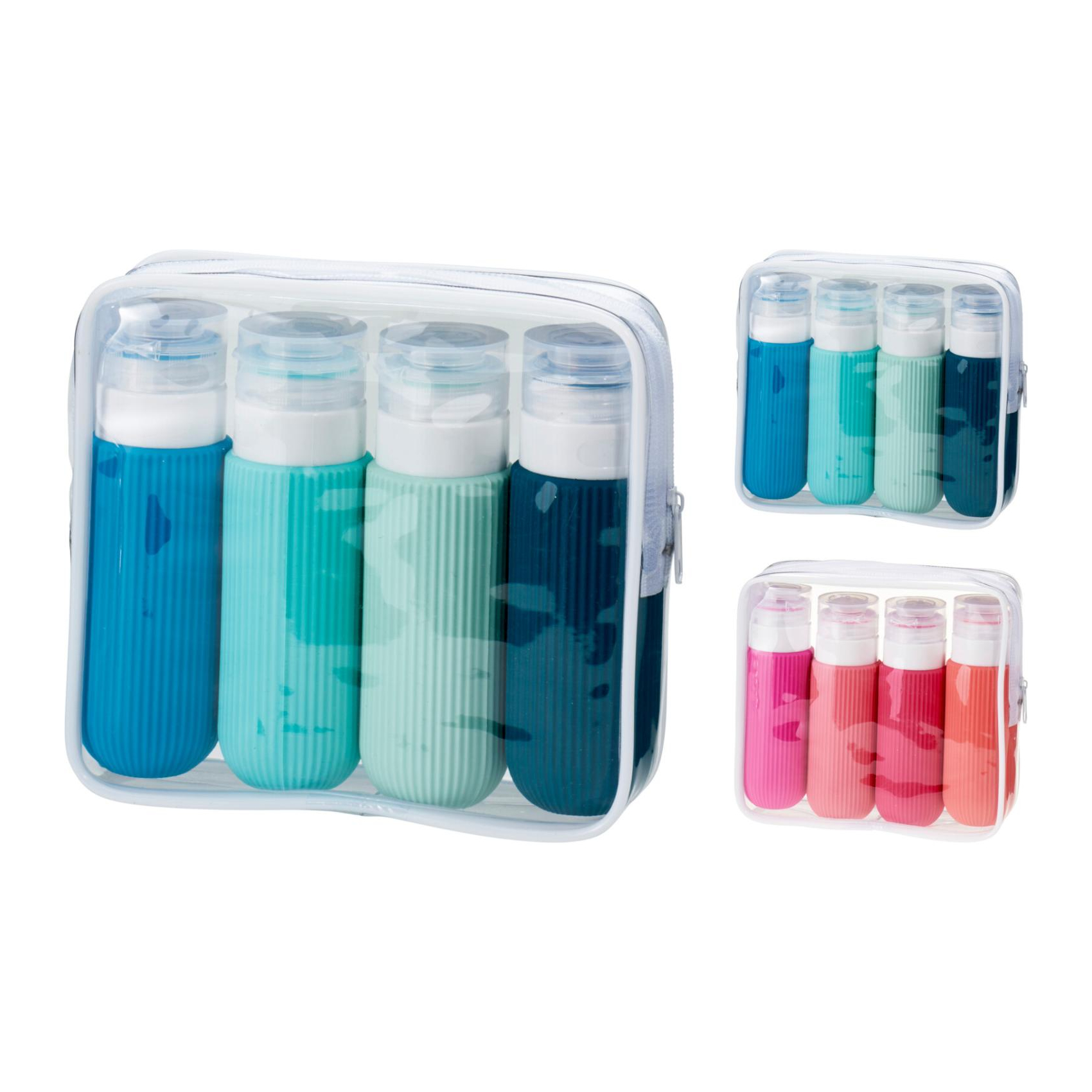 4 kappaletta matkapulloja kätevässä pussukassa.