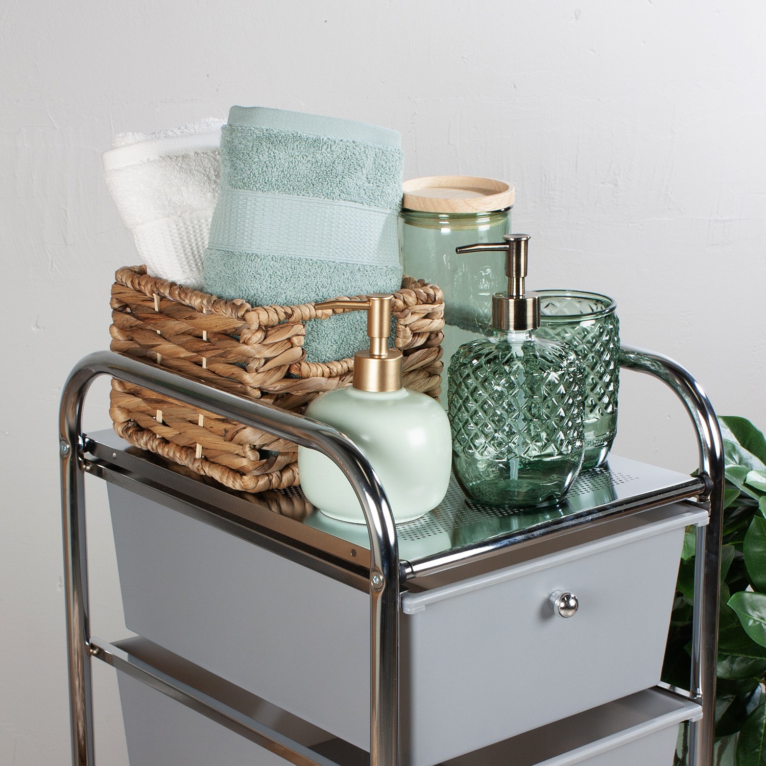 Kätevä korivaunu on kylppärin pelastus! Sen uumeniin mahtuu paljon irtotavaraa ja päällystä voi pitää laskutilana. Jos yksi ei riitä, niin hanki vaikka kaksi. Korivaunua voi hyvin käyttää myös muissa kodin tiloissa, kuten vaikka keittiössä tai vaatehuoneessa.