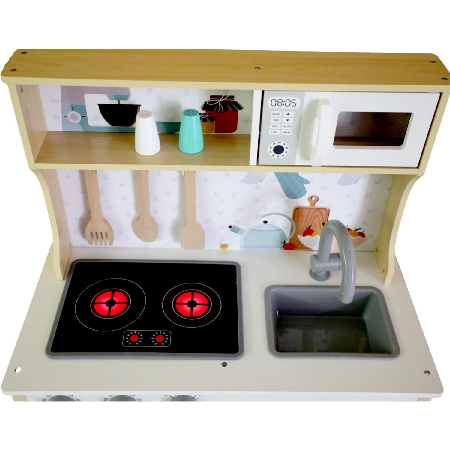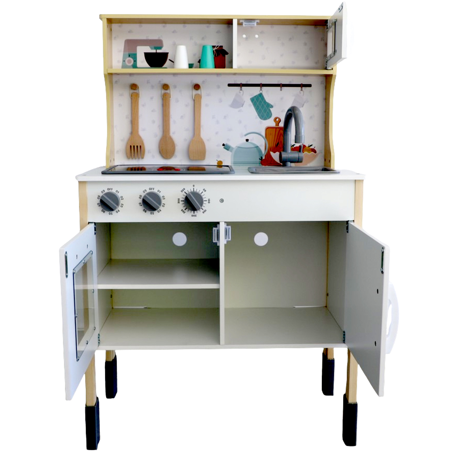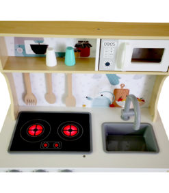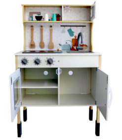 Lil’Tot leikkikeittiö tarvikkeineen on klassinen leikkikeittiö pohjoismaista design-tyyliä.