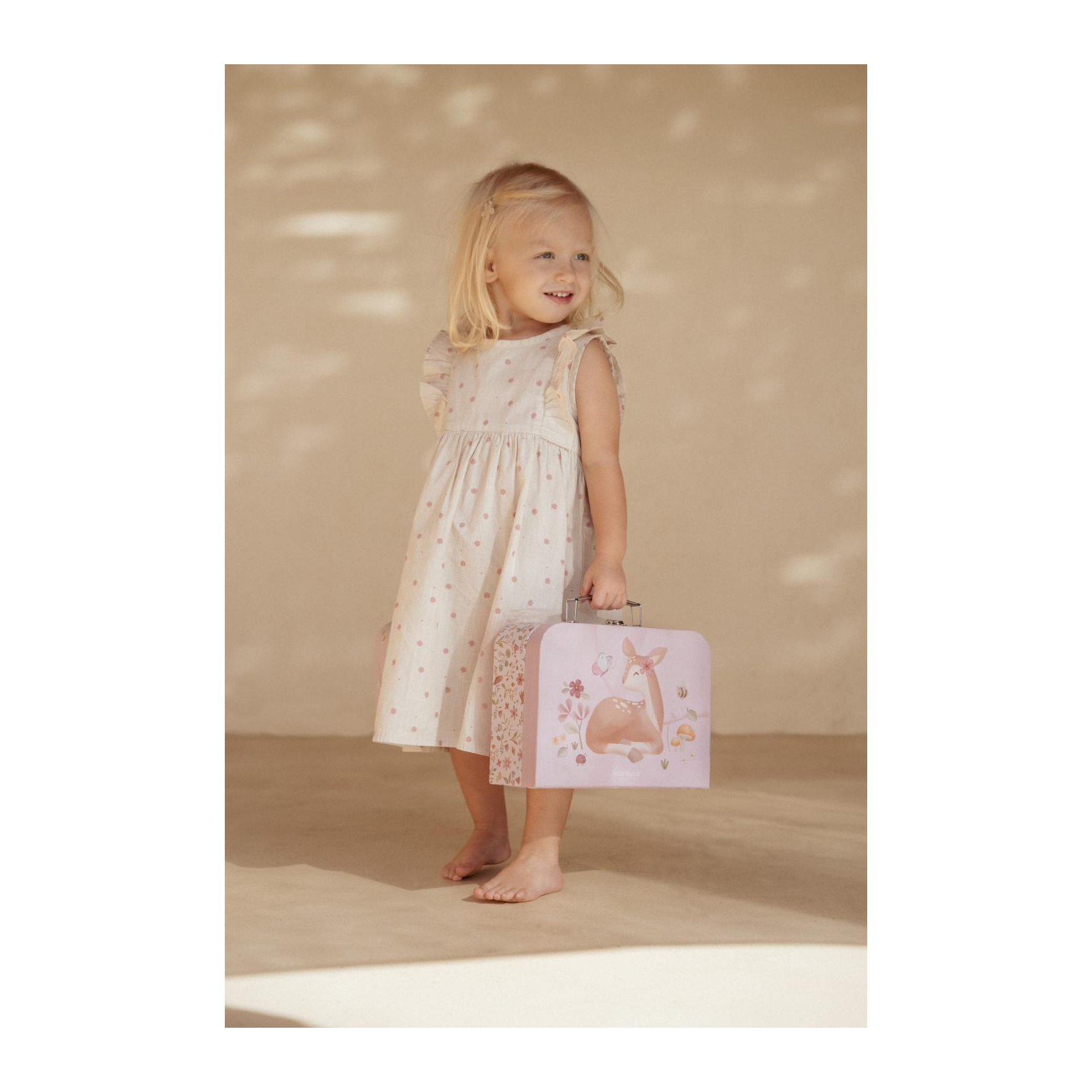 Lähde tutkimusretkelle satujen maailmaan! Tämä ihastuttava lasten matkalaukkusetti sisältää kaksi leikkimatkalaukkua Fairy Garden -teemalla, koristeltuna suloisilla kauriin kuvilla. Sisäpuoli hurmaa kauniilla kuosilla, ja klassinen metallinen kahva ja lukko tuovat ripauksen oikean matkalaukun tuntua – täydellinen pienille seikkailijoille!