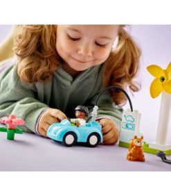 Hauska lelu pienille mekaanikoille – LEGO® DUPLO® Kaupunki Tuulivoimala ja sähköauto (10985) on värikäs setti, jonka parissa 2 vuotta täyttäneet pienet autojen ystävät oppivat vihreitä arvoja ja kestävää kehitystä leikin lomassa.