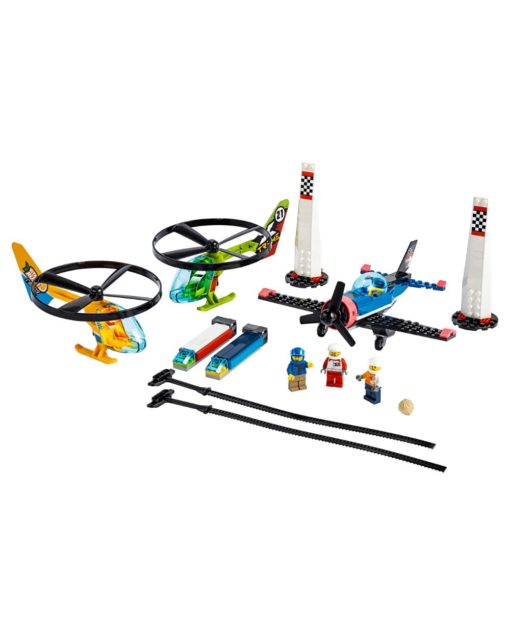 Jännitys kasvaa LEGO® City Lentokilpailussa. Lentäjä-ässänä tunnettu LEGO Cityn TV-tähti Rivera on noussut upean temppulentokoneensa kyytiin ja kohoaa taivaalle yhdessä Xtreme- ja Vitarush-helikopterilentäjien kanssa. Liity heidän seuraansa ja ampaise matkaan lähtötolppien välistä. He liitelevät, tekevät silmukoita, syöksyvät alas ja kiemurtelevat LEGO Cityn taivaalla yleisön hurratessa alapuolella! Kuka ylittää maaliviivan ensimmäisenä?