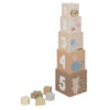 Puinen pinoamislelu, jossa nallen pää päällimmäisenä. Korkeus 18 cm.