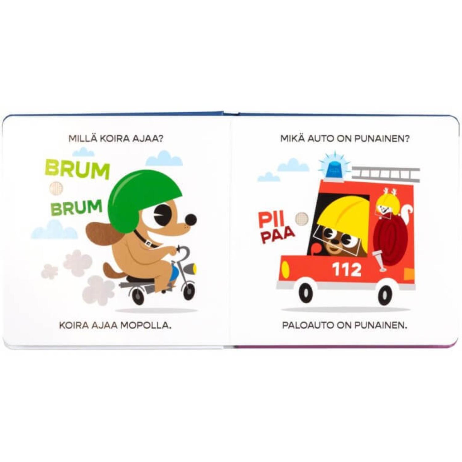 Miten mopo pärisee? Miltä kuulostaa hevosen kavioiden kopse? Yrren matkassa on ääninappikirja perheen pienimmille. Kirjassa on selkeitä kuvia katseltavaksi ja ääninappipainikkeita paineltavaksi. Helppoja ääniä on kiva matkia! Kuvien ja äänien lisäksi kirjassa on lyhyitä kysymyksiä ja tekstejä, joiden parissa lapsen ja aikuisen lukuhetkestä tulee mieluisa: Mikä auto on punainen? Paloauto on punainen. Ääninappikirjassa on 12 ääntä.