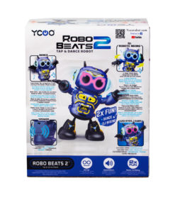 Tanssiva robotti täynnä säihkettä! Valmiina bileisiin? ROBO BEATS 2 on interaktiivinen Tap & Dance -robotti, joka tuo valot, äänet ja tanssin suoraan leikkihuoneeseen! Aktivoi robotti yhdellä napin painalluksella sen päältä – se alkaa tanssia ja tuottaa musiikkia (sisältää 3 kappaletta). Haluatko vielä vähän enemmän? Koskettamalla sen päätä voit lisätä musiikkiin eri soundeja ja miksata kuin oikea DJ!