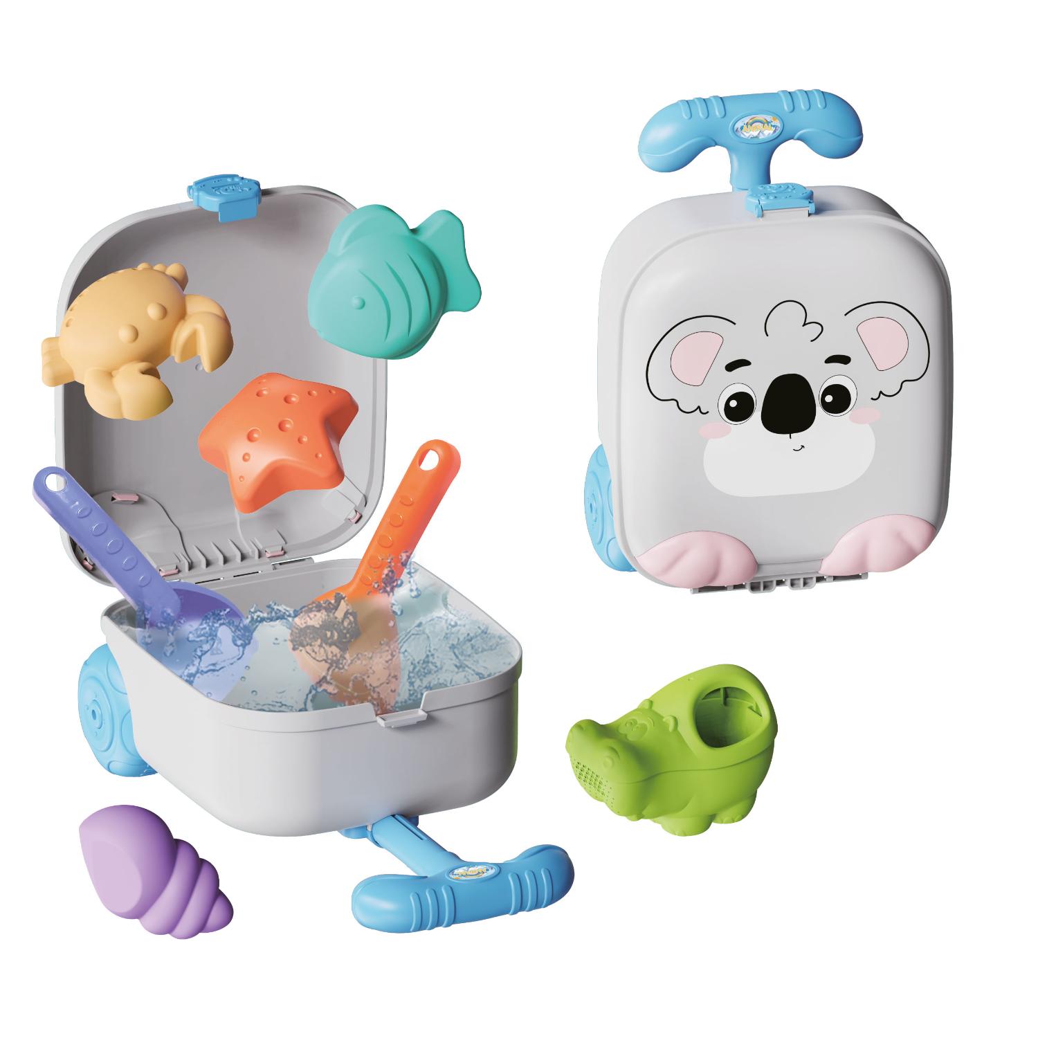 Vedettävä matkalaukku täynnä hauskoja hiekkaleluja!