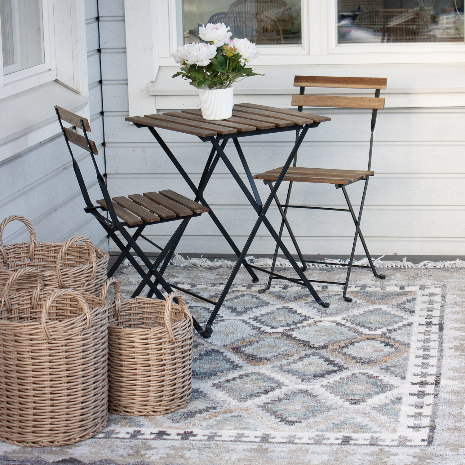 Akaasia puusta ja metallista valmistettu puutarhakaluste. Pakettiin kuuluu kaksi tuolia ja pöytä. Kokoontaitettavuutensa ansioista setti sopii myös pieneen tilaan ja se on helppo varastoida.