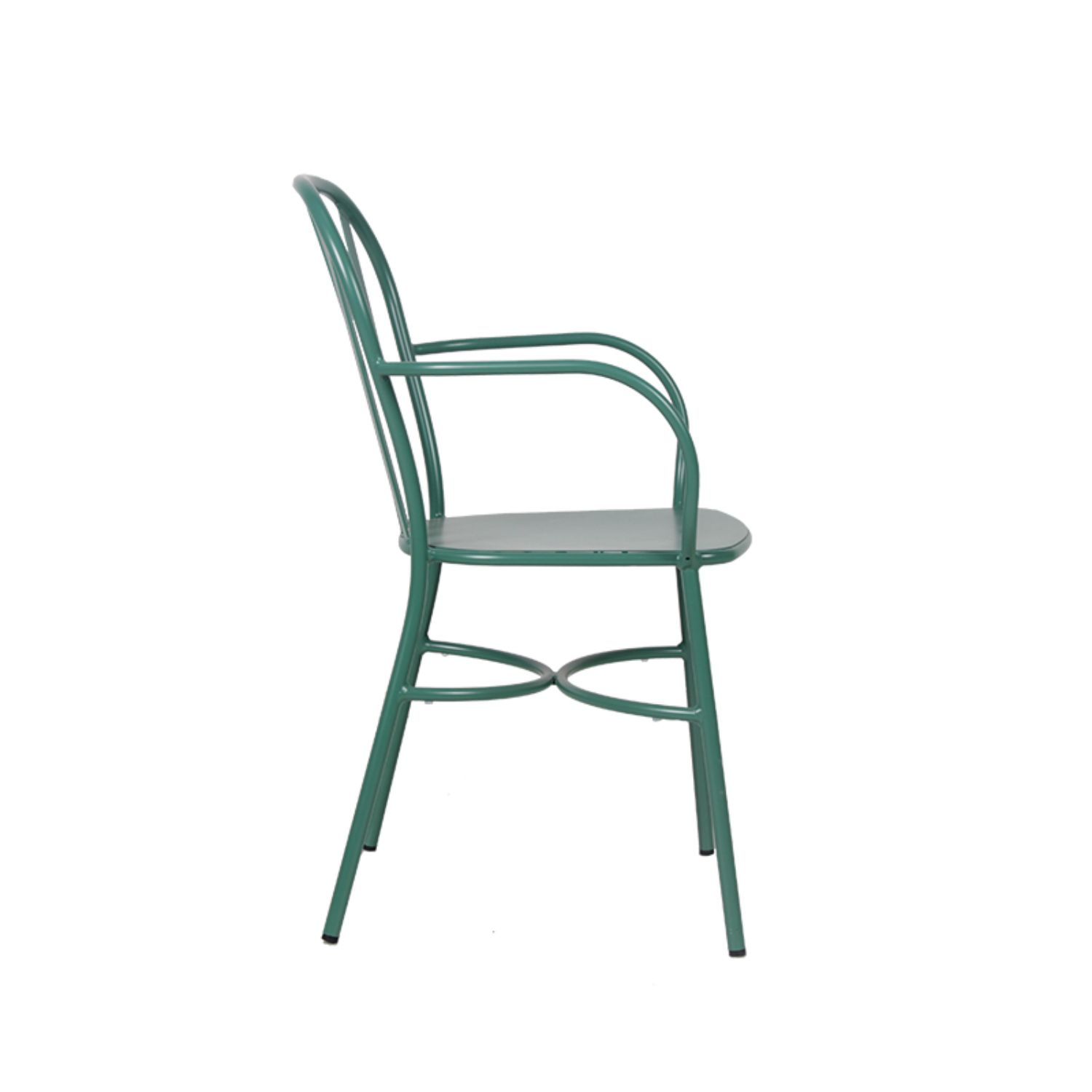 Kauniin viileän vihreä Puuterimaalattu alumiinituoli käsinojilla. Super trendikäs! Sopii sisälle tai parvekkeelle ja on kevyt siirtää paikasta toiseen. Tuoleja saatavilla useassa värissä.
