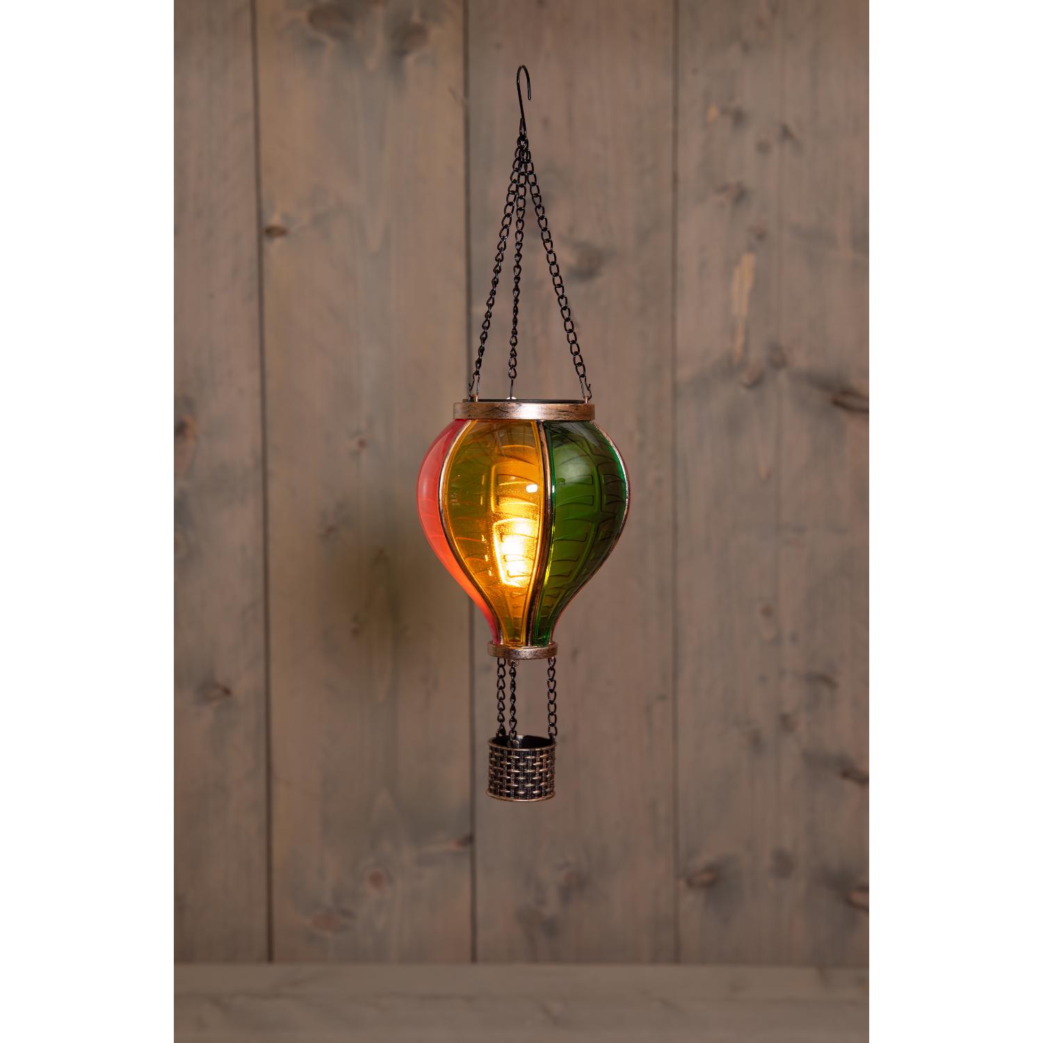 Kaunis, ripustettava, aurinkokennolla toimiva kuumailmapallokoriste.
