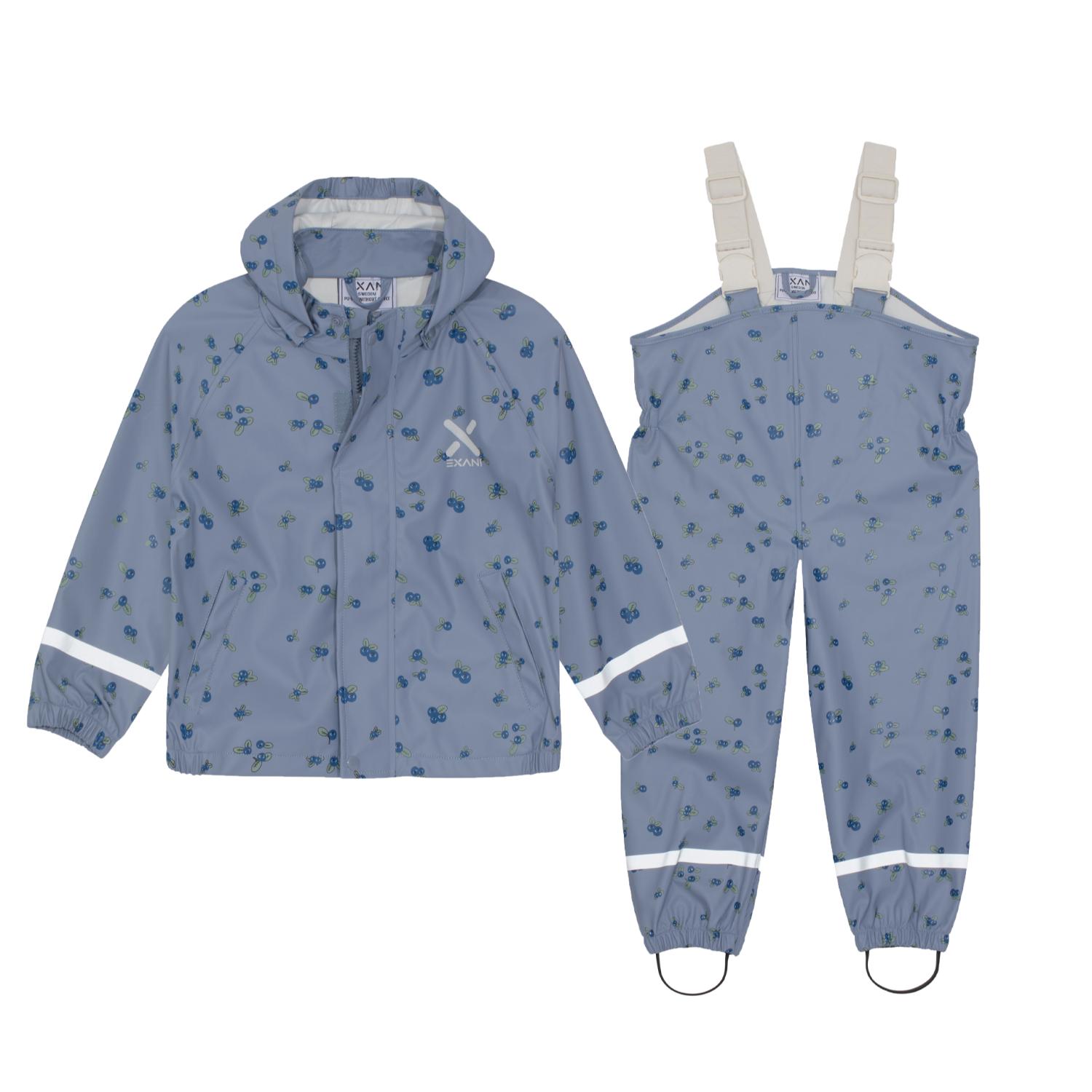 Tuulen- ja vedenpitävä, vuoriton sadeasu leikkisillä kuvioilla.