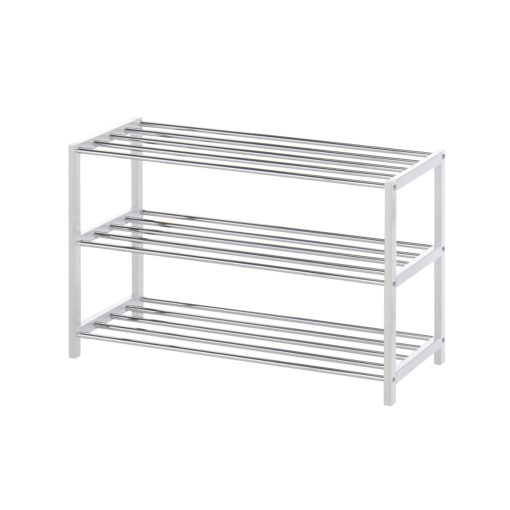 Valkoinen kenkäteline, 3-tasoa, kehys puuta.