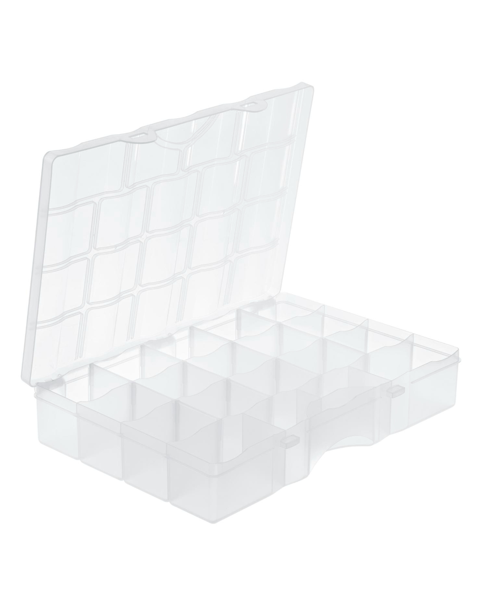 Helppo tapa pitää pikkutavarat järjestyksessä. Pienissä lokeroissa pysyvät esimerkiksi ruuvit, mutterit, ompelutarvikkeet ja kalastusvälineet järjestyksessä. Läpinäkyvästä kannesta on myös helppo nähdä laatikon sisältö.