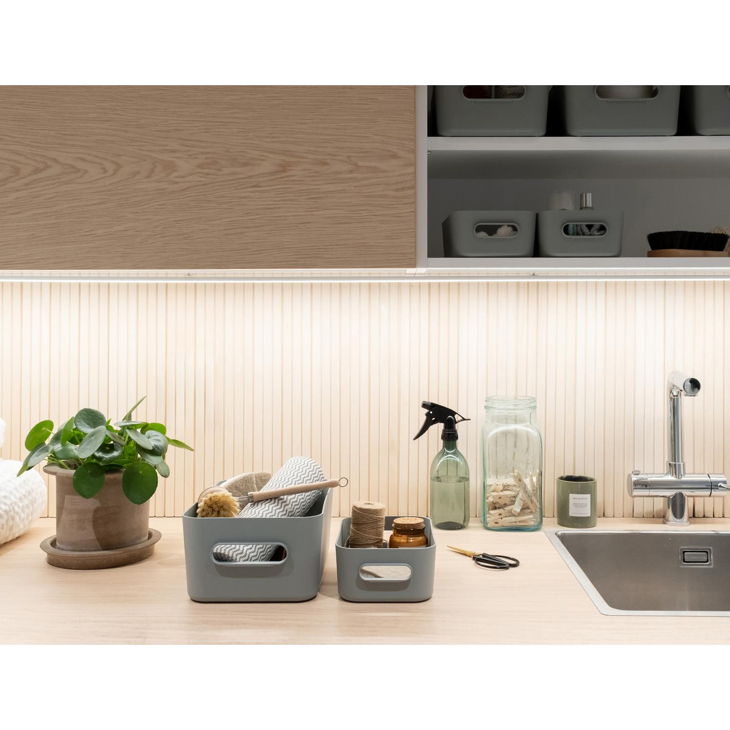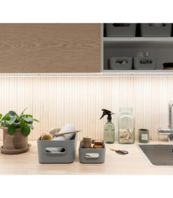 SmartStore™ Comfort auttaa pitämään arjen käyttötavarat järjestyksessä. Kauniit säilytyslaatikot ovat saatavilla trendikkäissä, maanläheisissä väreissä. Ne on suunniteltu käytettäväksi niin kaapeissa ja laatikoissa kuin hyllyillä ja tasoilla. M-kokoinen Comfort-säilytyslaatikko on täydellinen niin pienten hygieniatarvikkeiden järjestelyyn kylpyhuoneessa, pesuaineiden säilytykseen kodinhoitohuoneessa kuin eteisen tai autotallin pikkutavaroille.
