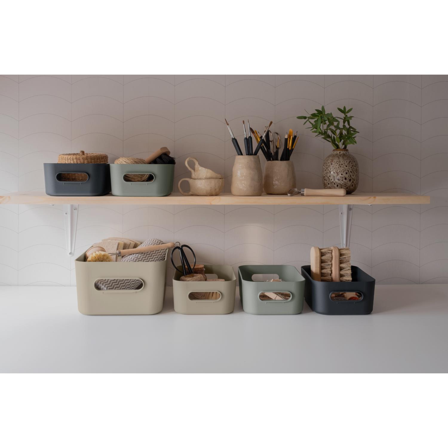 SmartStore™ Comfort auttaa pitämään arjen käyttötavarat järjestyksessä. Kauniit säilytyslaatikot ovat saatavilla trendikkäissä, maanläheisissä väreissä. Ne on suunniteltu käytettäväksi niin kaapeissa ja laatikoissa kuin hyllyillä ja tasoilla. S-kokoinen Comfort-säilytyslaatikko on täydellinen niin pienten hygieniatarvikkeiden järjestelyyn kylpyhuoneessa, pesuaineiden säilytykseen kodinhoitohuoneessa kuin eteisen tai autotallin pikkutavaroille.