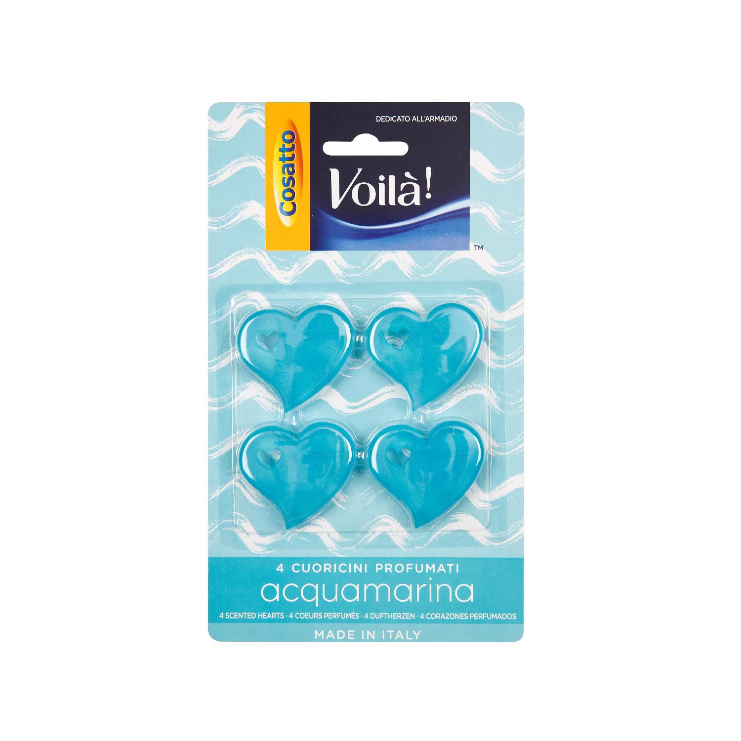 ”Akvamariini”-tuoksusydämet. Korkealaatuisimmista raaka-aineista valmistetut sydämet tarjoavat pitkäkestoisen, hienovaraisen ja luonnollisen tuoksun ja raikkauden vaatekaappeihin ja pieniin tiloihin.