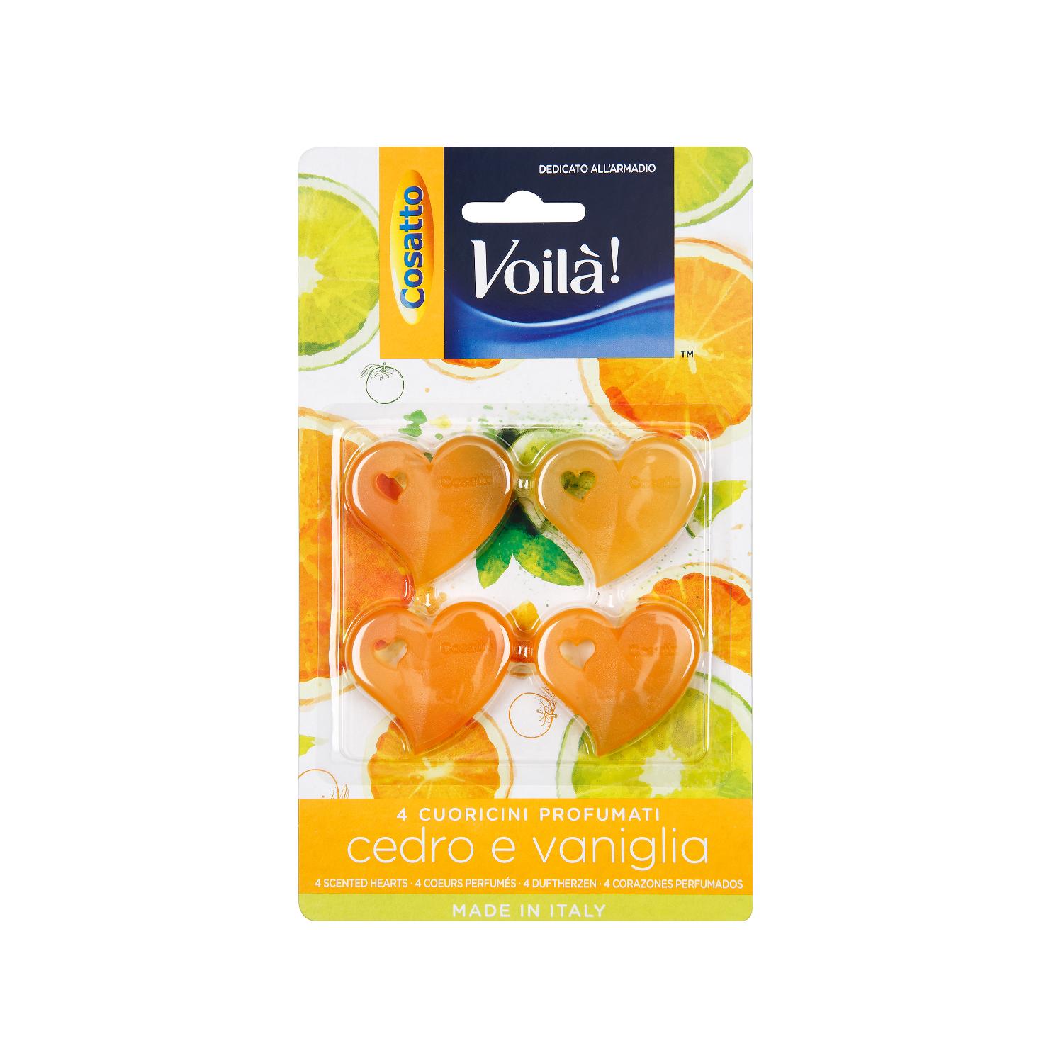 ”Setri ja vanilja” -tuoksusydämet. Korkealaatuisimmista raaka-aineista valmistetut sydämet tarjoavat pitkäkestoisen, hienovaraisen ja luonnollisen tuoksun ja raikkauden vaatekaappeihin ja pieniin tiloihin.