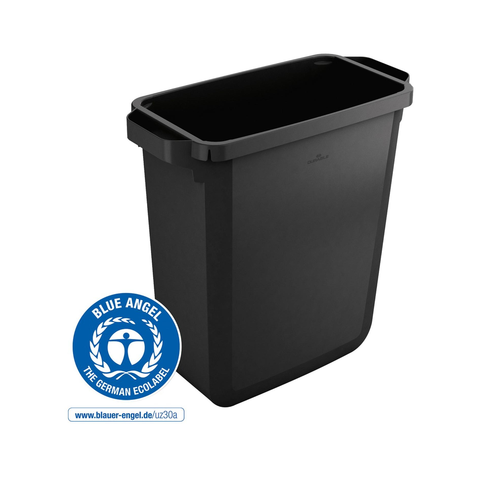 DURABIN® ECO 60 -jäteastia on sertifioitu saksalaisella Sininen enkeli -ympäristömerkillä, joka asettaa korkeat standardit ympäristöystävälliselle tuotesuunnittelulle ja on ollut luotettava opas kestävämpään kulutukseen vuodesta 1978 lähtien. Muovi, josta tämä jäteastia on valmistettu, koostuu vähintään 80% kerätystä kierrätysmuovista, ja samalla sillä on pitkä käyttöikä ja se on täysin kierrätettävissä. Tynnyriä, jossa on ergonomiset kahvat ja tyhjennystä helpottava tartuntakahva tynnyrin alla, voidaan käyttää moniin tarkoituksiin – esimerkiksi suurena jätepaperikorina, kierrätyslajittelussa tai löytövaatekorina.