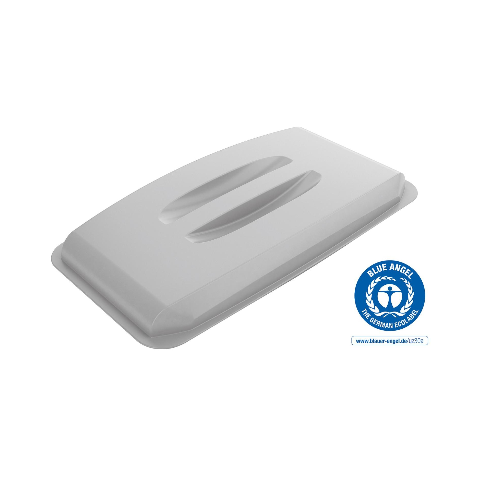 Kansi DURABIN® EKO 60 on sertifioitu saksalaisella Blue Angel -ympäristömerkillä, joka asettaa korkeat standardit ympäristöystävälliselle tuotesuunnittelulle ja on ollut luotettava opas kestävämpään kulutukseen vuodesta 1978 lähtien. Muovi, josta tämä kansi on valmistettu, koostuu suurelta osin Blue Angel sertifioidusta kierrätysmuovista, ja sen käyttöikä on pitkä ja se on täysin kierrätettävissä. DURABIN®-mallistoa voidaan käyttää moniin tarkoituksiin – esimerkiksi suurena jätepaperisäiliönä tai jätteidenlajittelu -ratkaisuna.