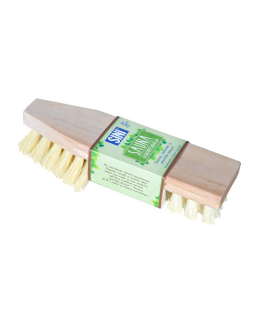 Harjakset luonnonkuitua. Saunan, lauteiden ja pesutilan pesuun. Pitkä etuharjas ylettyy nurkkiin ja lauteiden väliin.