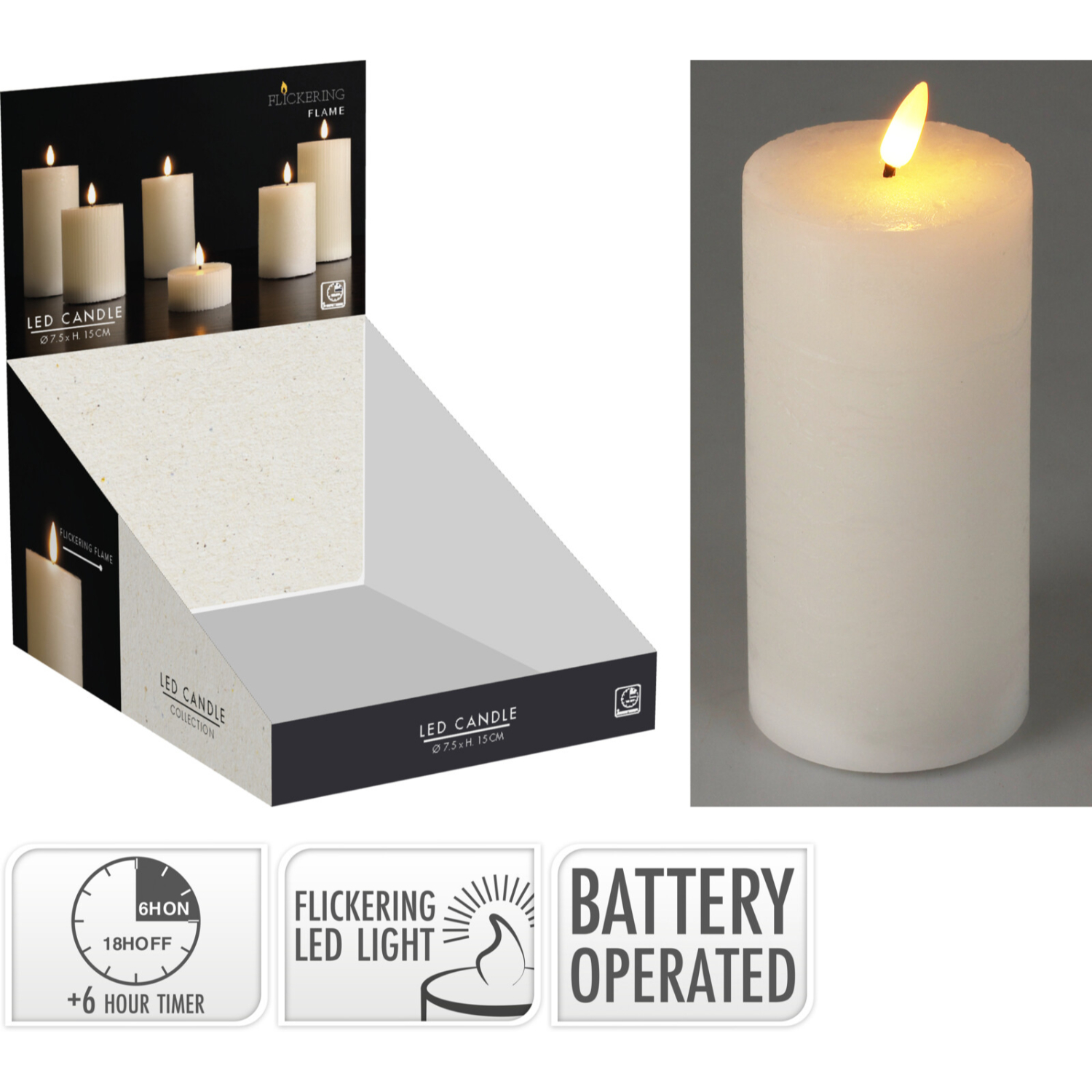 LED-kynttilä 7,5x15cm