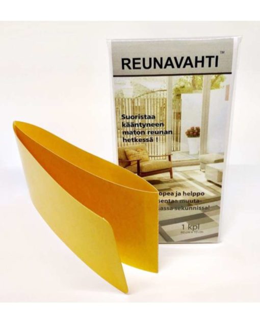 Reunavahdilla korjaat maton kääntyvän reunan helposti ja nopeasti: irrotat vain suojapaperin ja kiinnität Reunavahdin maton alapintaan. Loistava apu, jos matto jää helposti kiinni oven alareunaan ovea käytettäessä. Tuote on muotoiltavissa saksilla ja repäistävissä katkoviivasta pienempään osaan.