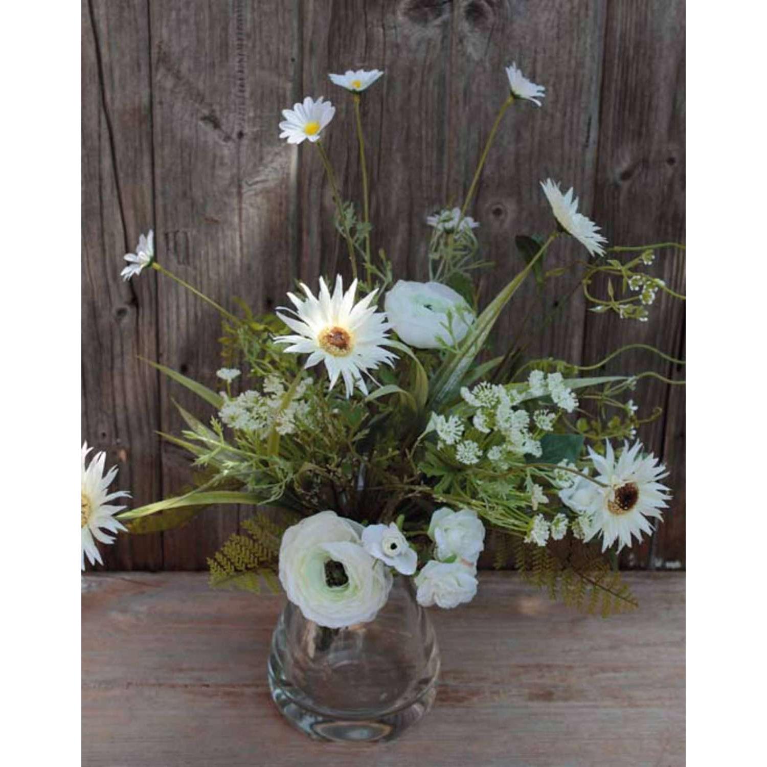 Kesäinen tekokukka-kimppu, jossa ruusuja, gerberoita ja leinikkejä