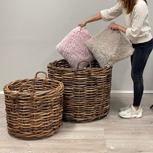 Sisusta ja säilytä tyylillä! Näihin upeisiin jättikokoisiin rottinkikoreihin mahtuu todella paljon tavaraa. Kaunis ruskea väri ja jämäkkä, paksu punos.