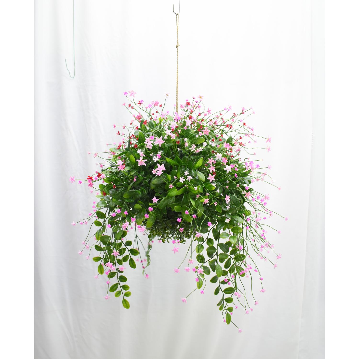Iso tekokukka-amppeli 48cm vaaleanpunaiset kukat