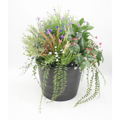Ruukkuun istutettu tekokukkakokonaisuus on upea lisä terassin tai kodin sisustukseen.