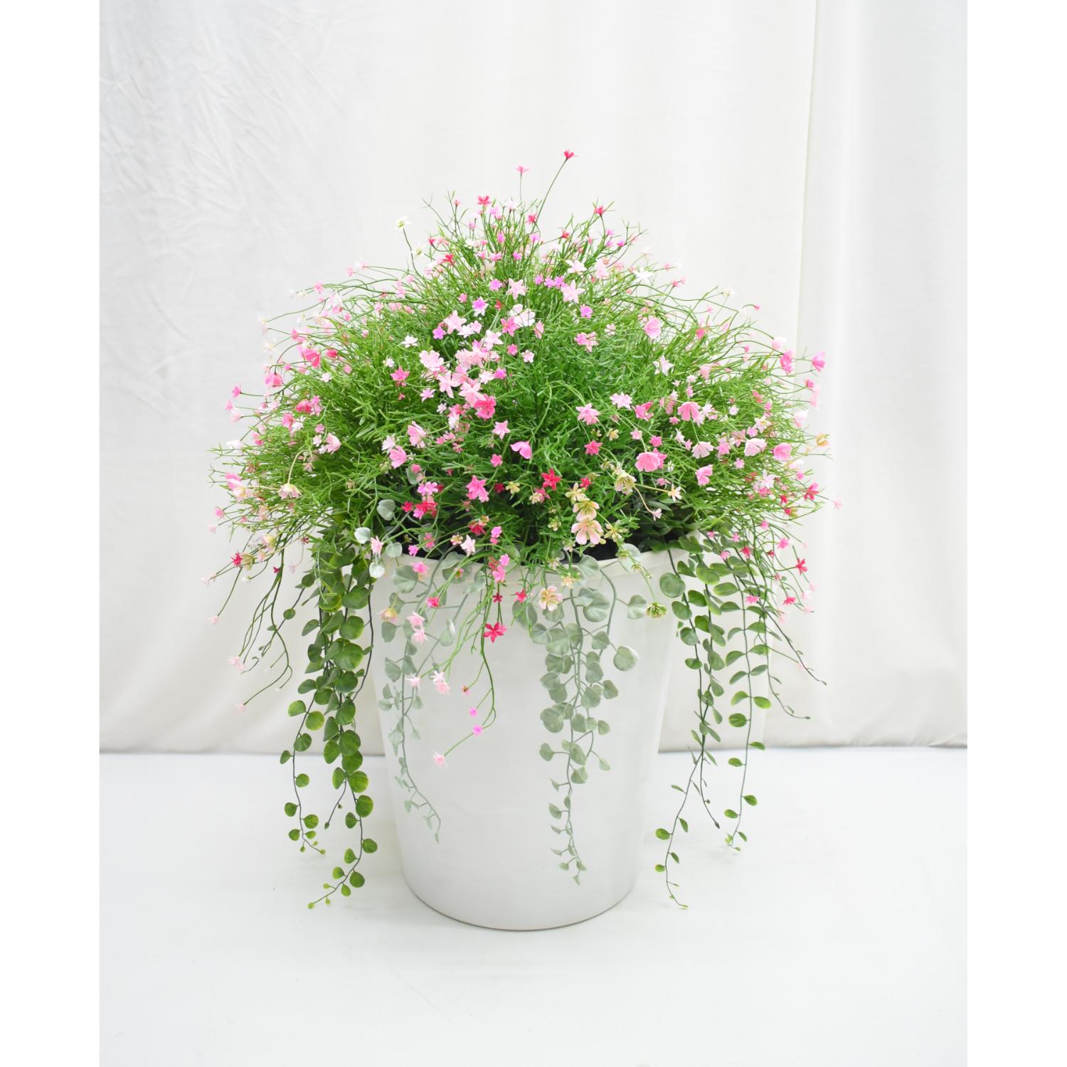 Ruukkuun istutettu tekokukkakokonaisuus on upea lisä terassin tai kodin sisustukseen.