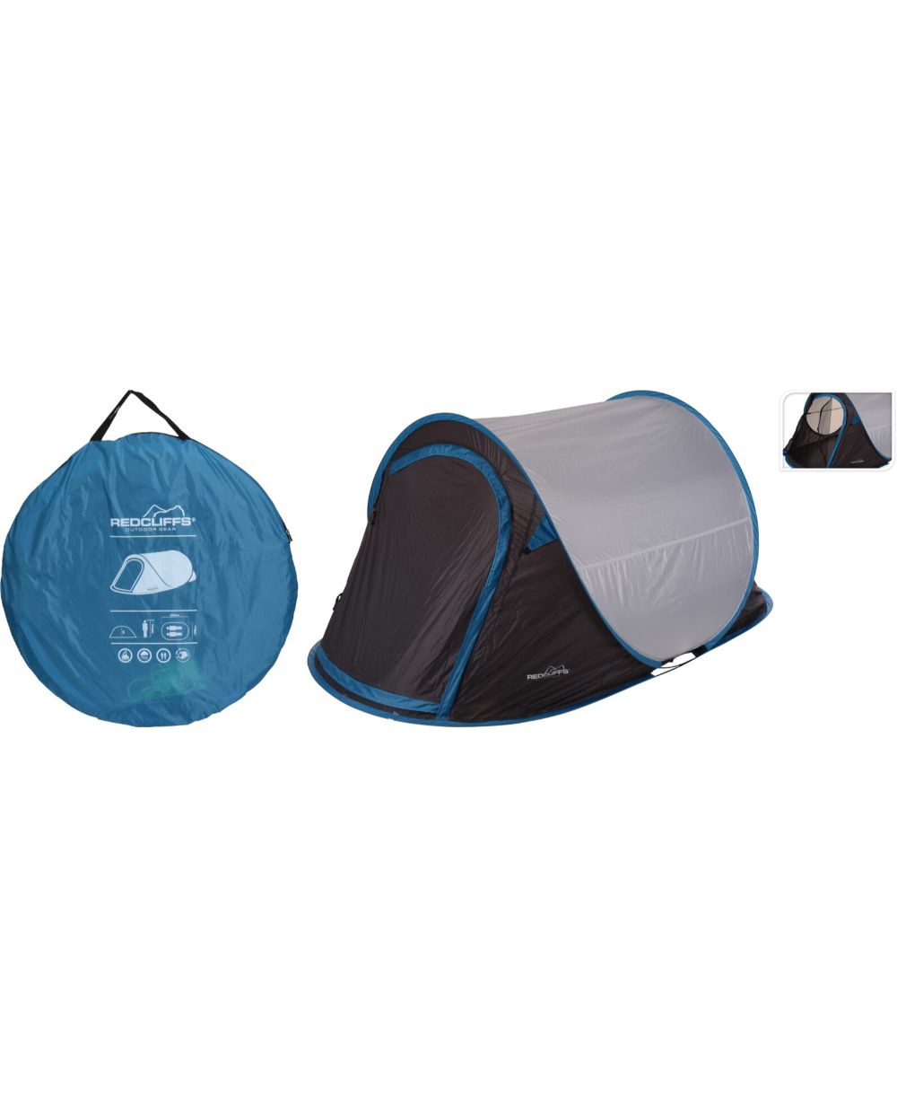 Kätevä teltta 2 hengelle. Helppo pystyttää, avautuu automaattisesti. Teltta kiinnitetään maahan tapeilla.