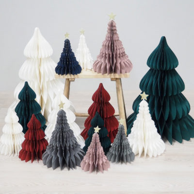Tänä vuonna valikomiimme on saapunut myös tyylikkäitä paperikuusia. Näillä ihanuuksilla on helppo koristella kaikenlaisia tiloja. Myös joulukattaukseen ne sopivat mainiosti!