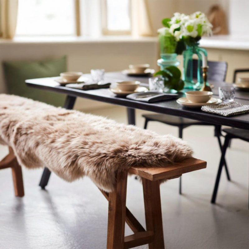 Kuvassa oleva Wooly-tekoturkistalja tekee ruokailutilasta kodin viihtyisimmän huoneen. Se pehmustaa tuolit mukavan pehmeiksi ja näyttää ajattoman tyylikkäältä. Saatavilla kolmessa kauniissa sävyssä – luonnonvalkoinen, beige ja tummanruskea. Tutustu täällä>>
